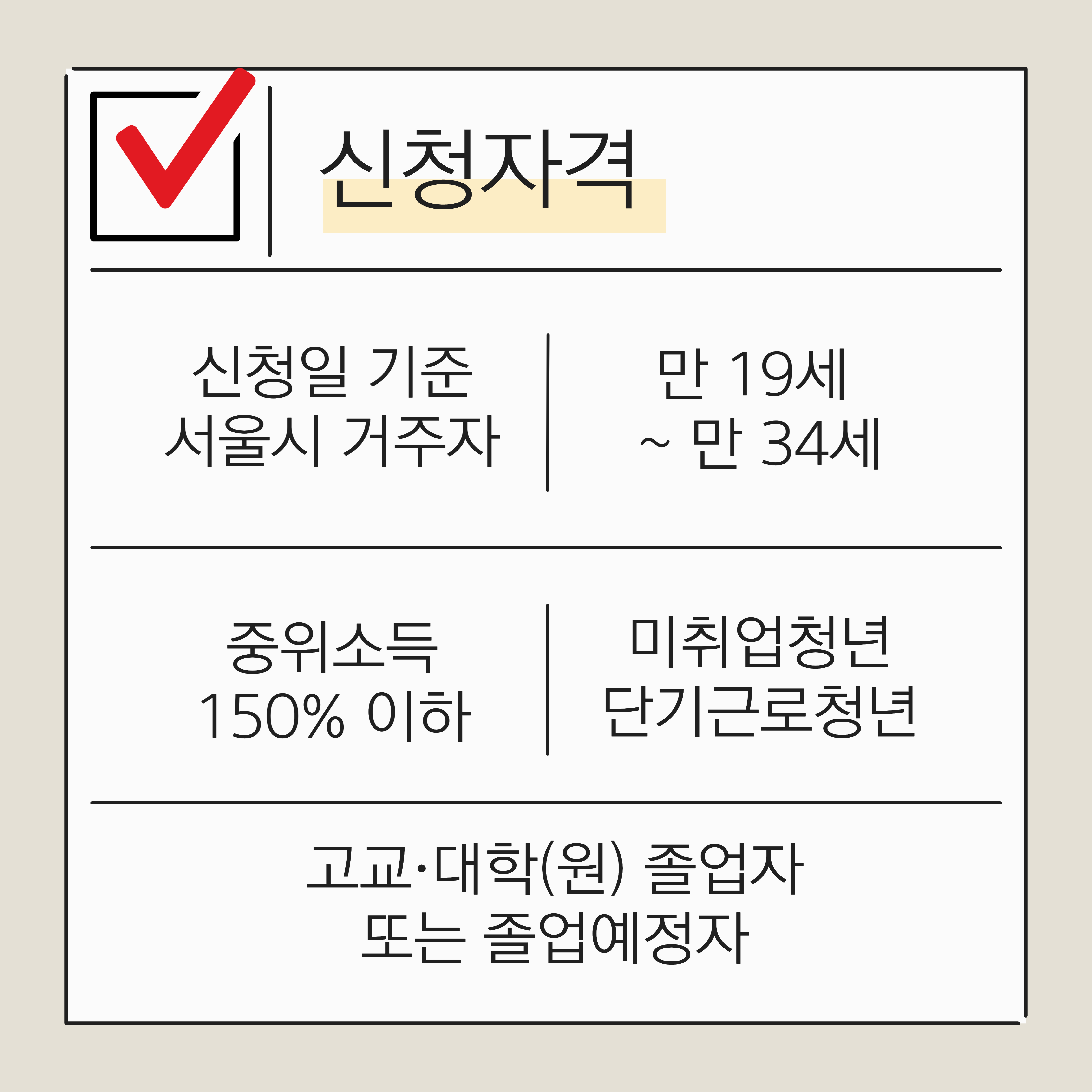 4. 지원대상 : 만 19~34세 서울시에 거주하며, 최종학력이 졸업 후 미취업상태인 자