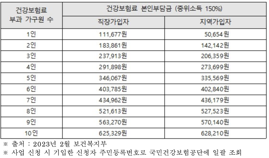 - 신청자가 지역세대원이나 직장피부양자인 경우 부양자 부과액을 기준으로 함