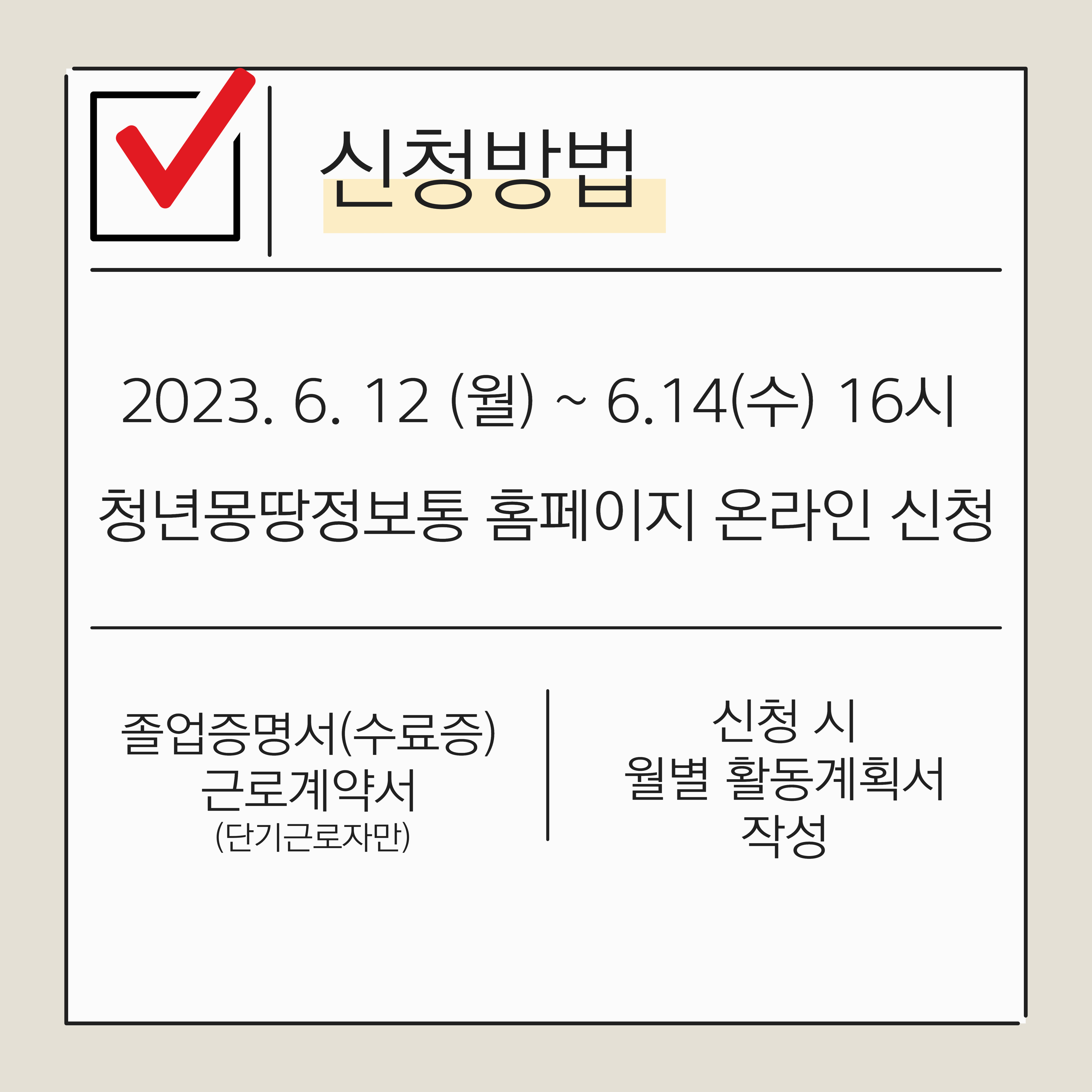 1. 신청기간 : 2023. 06.12(월) 10시 ~ 06.14(수) 16