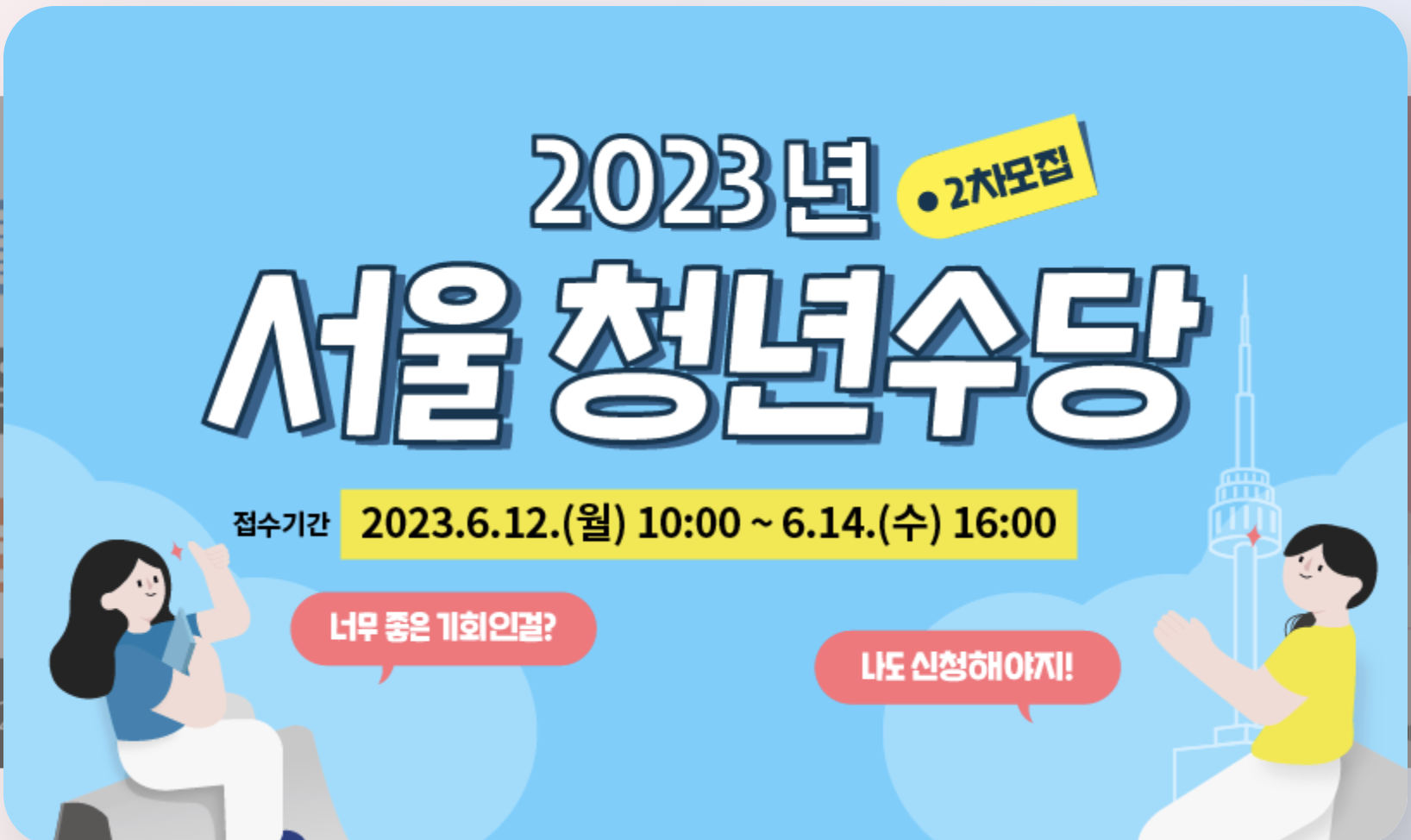 서울시 미취업 청년이라면 매월 50만 원, 최대 300만 원까지 지원받을 수 있는 <서울시 청년수당>의 2차 참여자 모집을 시작합니다. 모집인원이 무려 7,000명이나 되어 너무나 좋은 기회입니다. 6월 12일(월)부터 6월 14일(수)까지 단, 3일 동안만 신청을 받습니다. 청년수당 신청자격 및 신청방법, 준비서류 등 보기 쉽게 정리해 드리겠습니다. 급하신 분들은 <청년 몽땅 정보통 홈페이지>에서 빠르게 신청하시면 됩니다. 올해 청년수당 신청은 2차 모집을 끝으로 더 이상 기회가 없기 때문에 꼭 신청하셔서 300만 원 챙겨가시길 바랍니다.