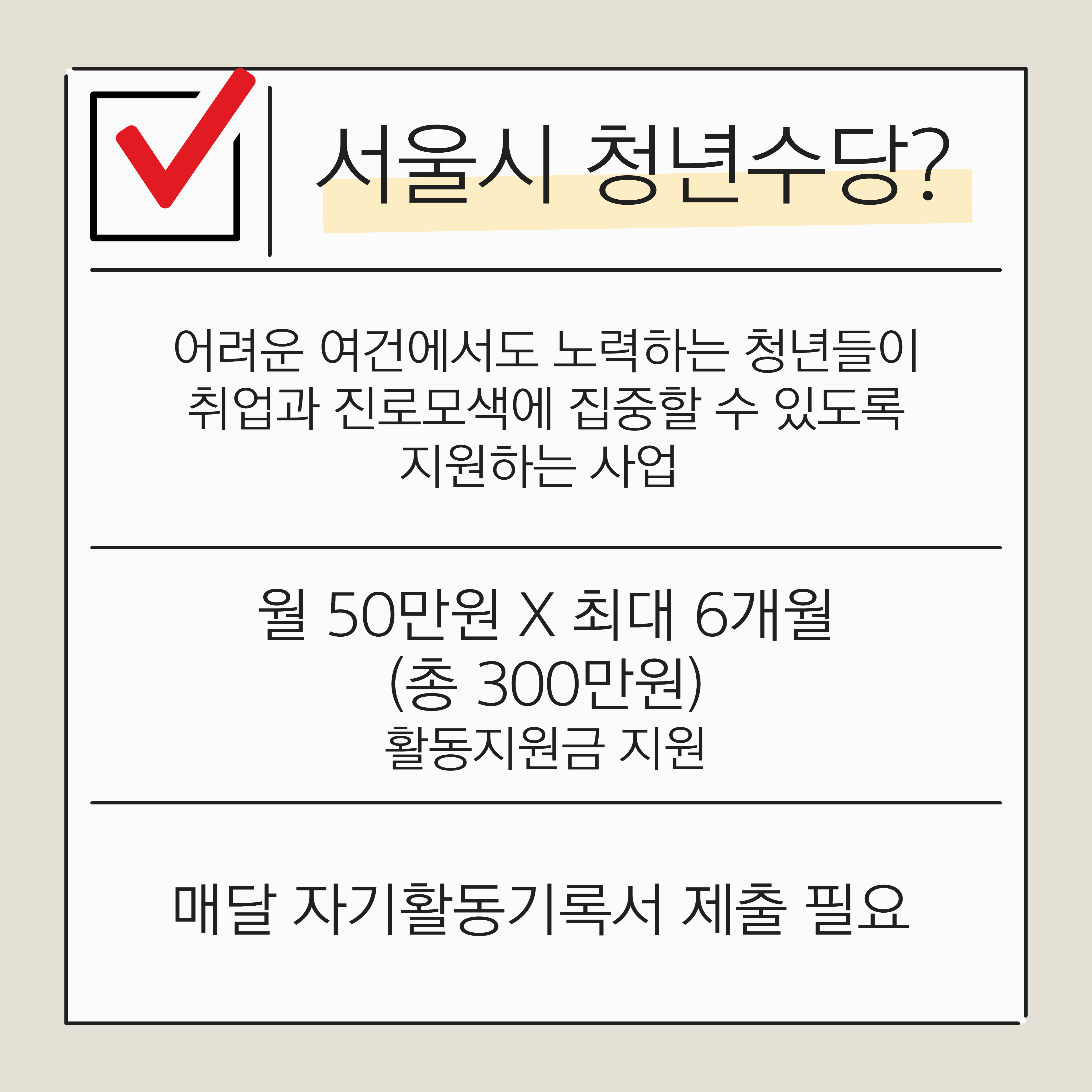 - 2017년~2023년 서울시 청년수당 사업에 참여한 자 (생애 1회만 지원가능)