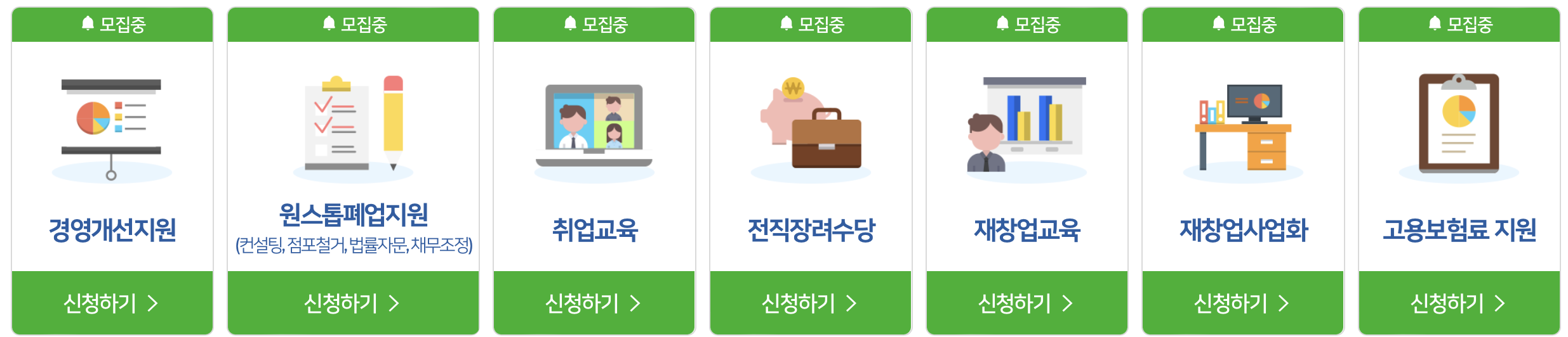 폐업(예정) 소상공인을 대상으로 점포철거비와 사업정리 컨설팅, 법률자문, 채무조정을 패키지로 지원해주는 서비스 입니다. 아래에서 각 항목별 지원내용을 자세히 알아보겠습니다.