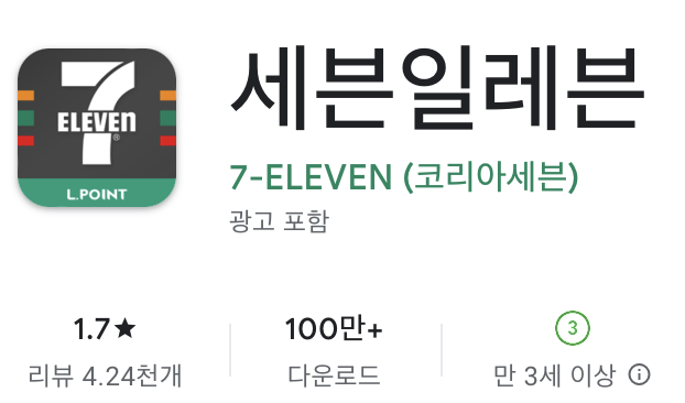 1. 세븐일레븐 앱이 없으신 분은 아래 링크를 통해 다운로드해주세요.