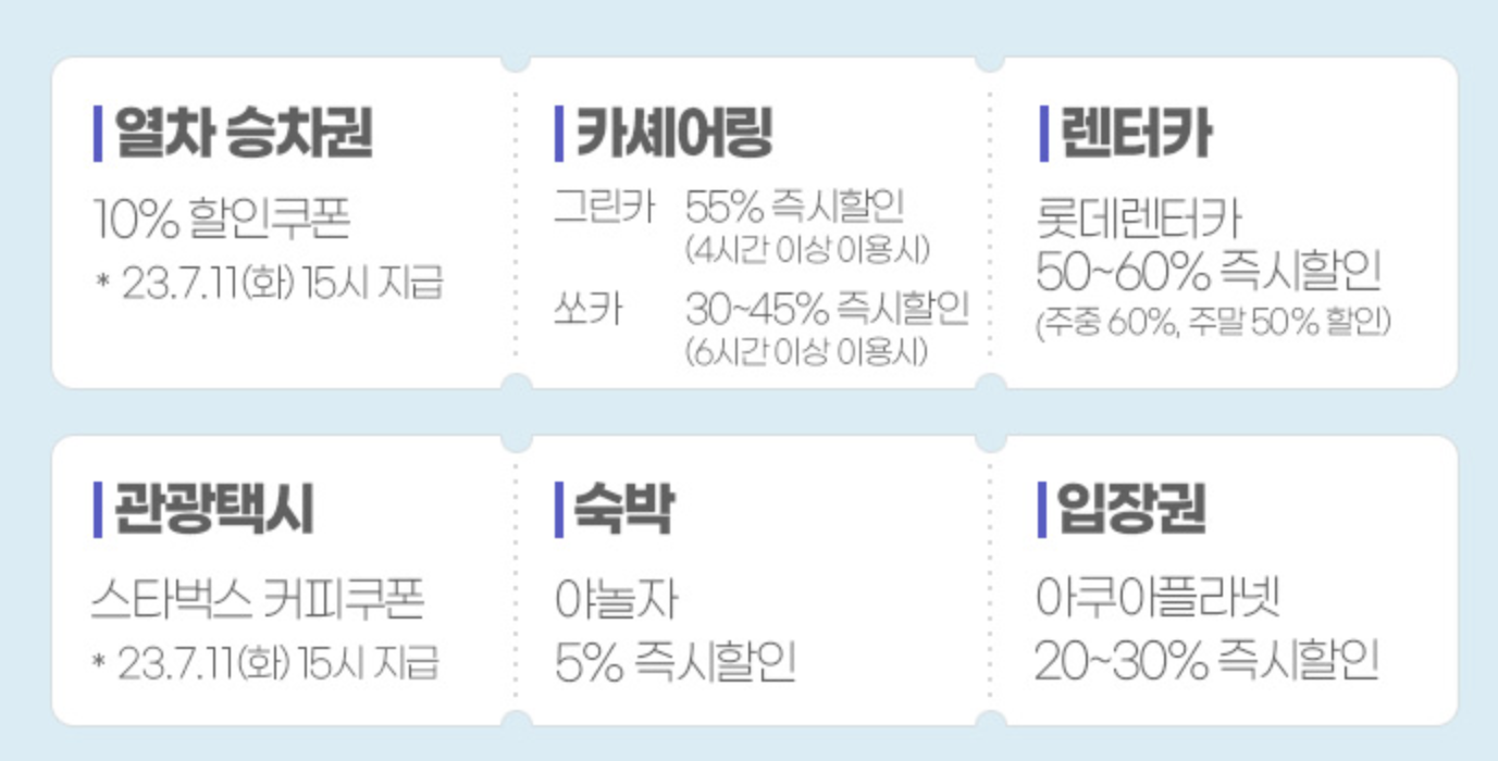 - 사용기간 : 출발일 기준 6월 1일(목) 부터 7월 7일(금) 까지