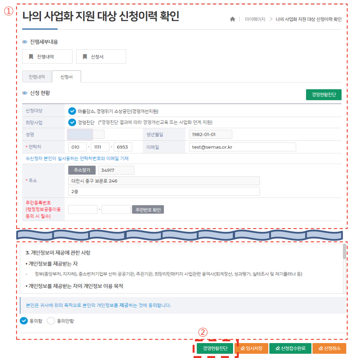 소상공인마당 홈페이지의 경영개선지원 신청 매뉴얼 자료에 입각하여 작성하였습니다.