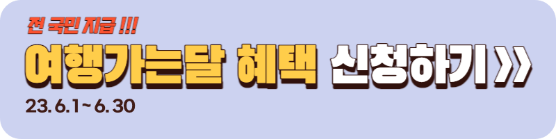 6월 여행가는 달 혜택! 예산 소진 시 조기 종료되오니 지금 바로 신청하고, 단돈 5만 원이라도 혜택 꼭 받으세요.